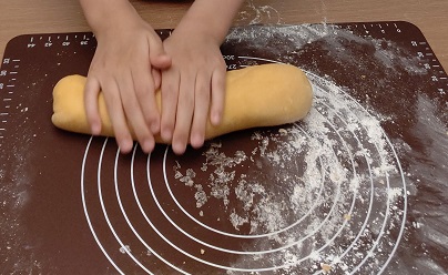 - 適当な大きさ(5,6個程度、小さめから始めたほうがいいかも)に切り分けます。乾かないようにラップを軽くかけておくとよいと思います。